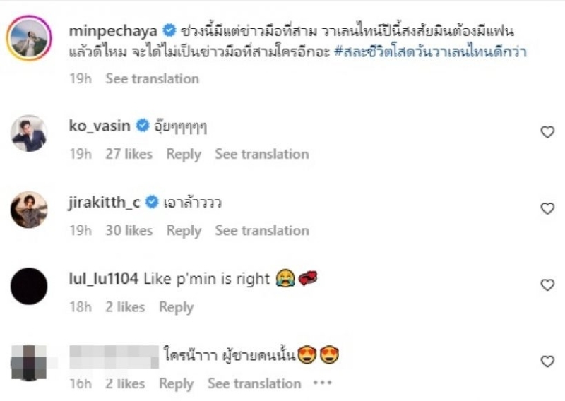 ล่าสุดต้องบอกเลยว่าทำกรี๊ดหนักมาก มิน พีชญา ประกาศสละโสดรับวาเลนไทน์ โดยทางด้านนางเอกสาว มิน พีชญา ได้ออกมาโพสต์ข้อความเอาไว้ว่า ช่วงนี้มีแต่ข่าวมือที่สาม วาเลนไทน์ปีนี้สงสัยมินต้องมีแฟนแล้วดีไหม จะได้ไม่เป็นข่าวมือที่สามใครอีกอะ #สละชีวิตโสดวันวาเลนไทนดีกว่า
